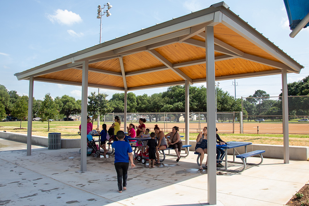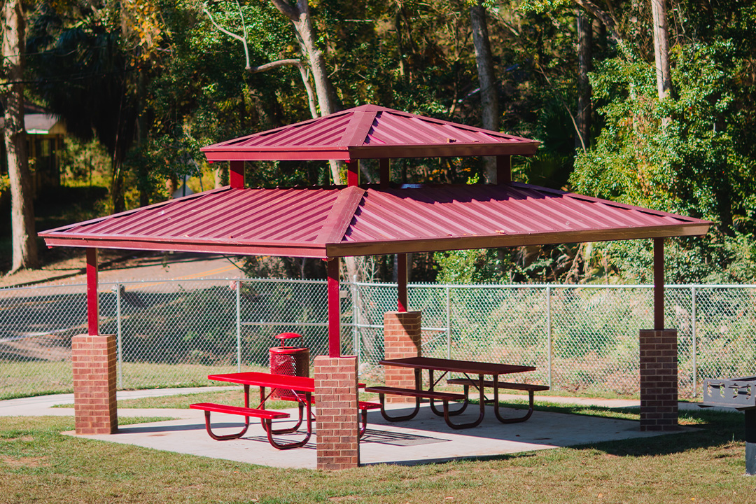 Hexagon shelters have six sides and a central post or frame configuration, offering a unique aesthetic and open, shaded space. They’re perfect for gardens, picnic areas, or community spaces that benefit from a more decorative design.