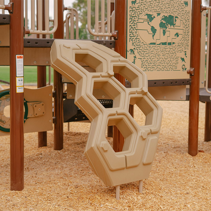 Featuring vertical net climbers, molded tube slides, the 75' Zip Line, and the Grand Top Spinner, this playground for schools and parks delivers diverse play experiences that promote strength, coordination, and full-body movement across multiple activity zones.