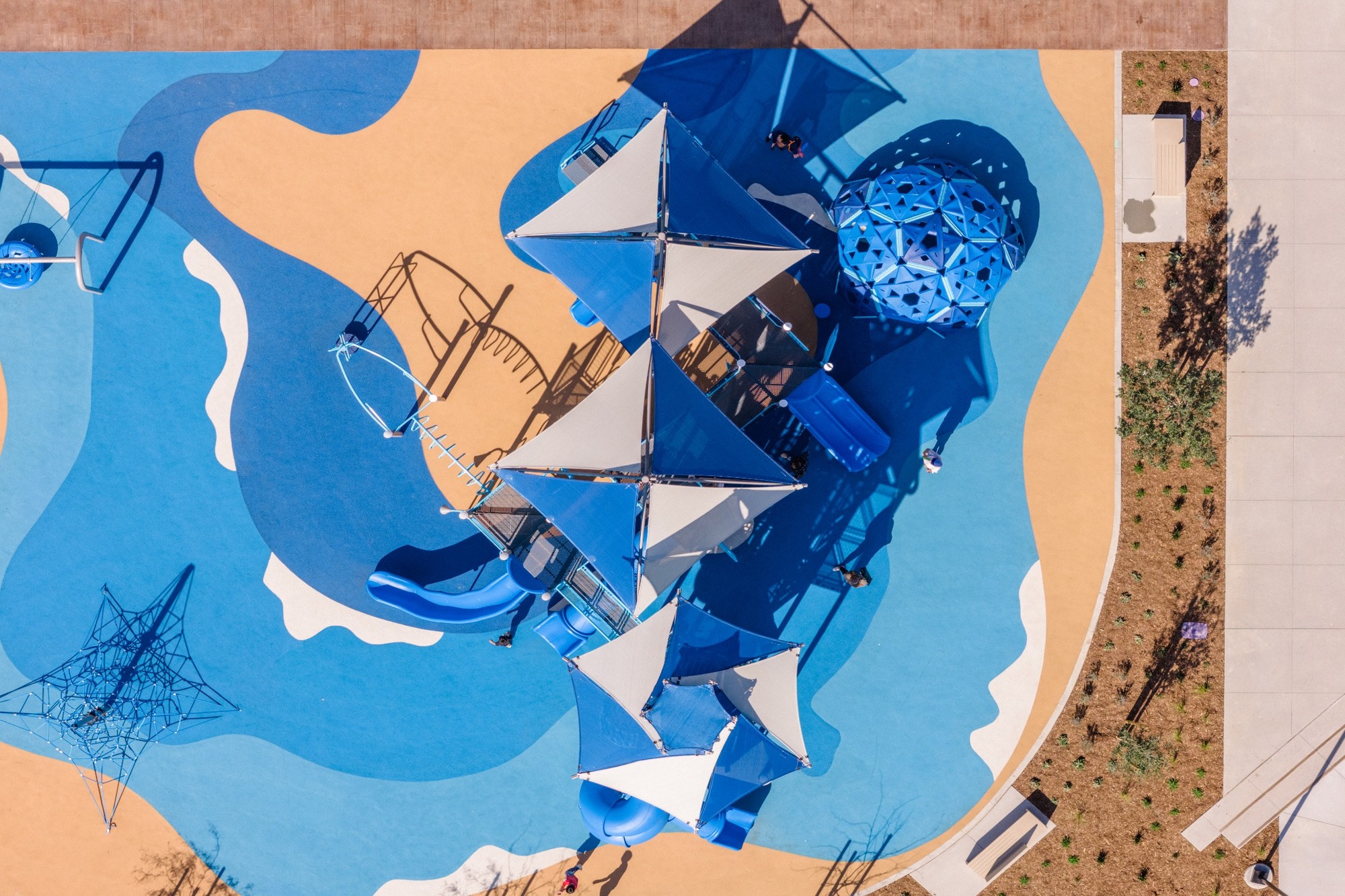 The PIP rubber surfacing design was inspired by the ocean, mimicking sandy beaches and different shades of ocean blue.
